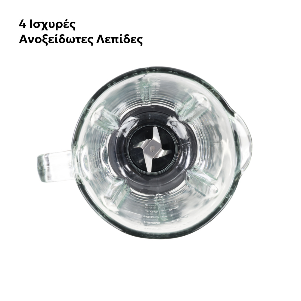 - Γυάλινη κανάτα 1.5L: Δεν απορροφά οσμές ή χρώματα, έτσι μπορείτε να χρησιμοποιείτε το μπλέντερ για διάφορες συνταγές χωρίς να επηρεάζει τη γεύση από προηγούμενα υλικά.