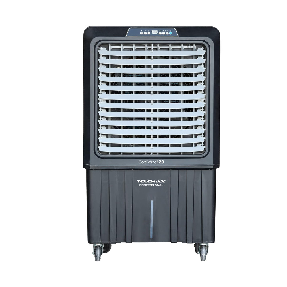 Το Air Cooler Telemax CoolWind120 είναι ένα προηγμένο σύστημα κλιματισμού με τεχνολογία εξάτμισης, που προσφέρει ισχυρή ψύξη 12.000 m³/h, εξαιρετικά χαμηλή κατανάλωση 420W και 80% εξοικονόμηση ενέργειας σε σχέση με τα παραδοσιακά συστήματα κλιματισμού. Είναι η ιδανική λύση για μεγάλους οικιακούς και επαγγελματικούς χώρους που απαιτούν οικονομική και υγιεινή δροσιά.