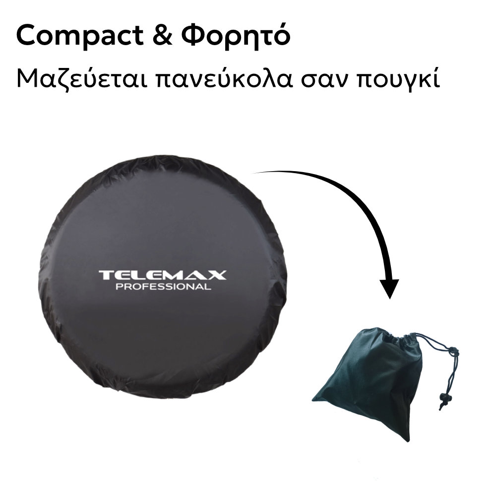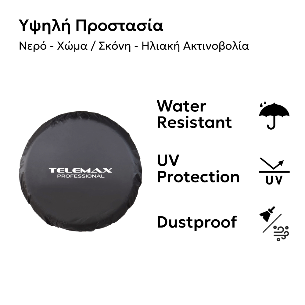 Το Telemax-C75 (MAH-C750) είναι ένα επαγγελματικό κάλυμμα προστασίας για ανεμιστήρες διαμέτρου 75cm (30"), κατασκευασμένο από υψηλής ποιότητας ύφασμα 210D Silver-Coated Oxford. Προσφέρει ολοκληρωμένη θωράκιση ενάντια στο νερό, τη σκόνη και την ηλιακή ακτινοβολία UV, εξασφαλίζοντας τη μακροζωία του εξοπλισμού σας. Είναι εξαιρετικά πρακτικό, καθώς τοποθετείται με ευκολία και μαζεύεται σε μορφή πουγκιού για compact αποθήκευση όταν δεν χρησιμοποιείται.