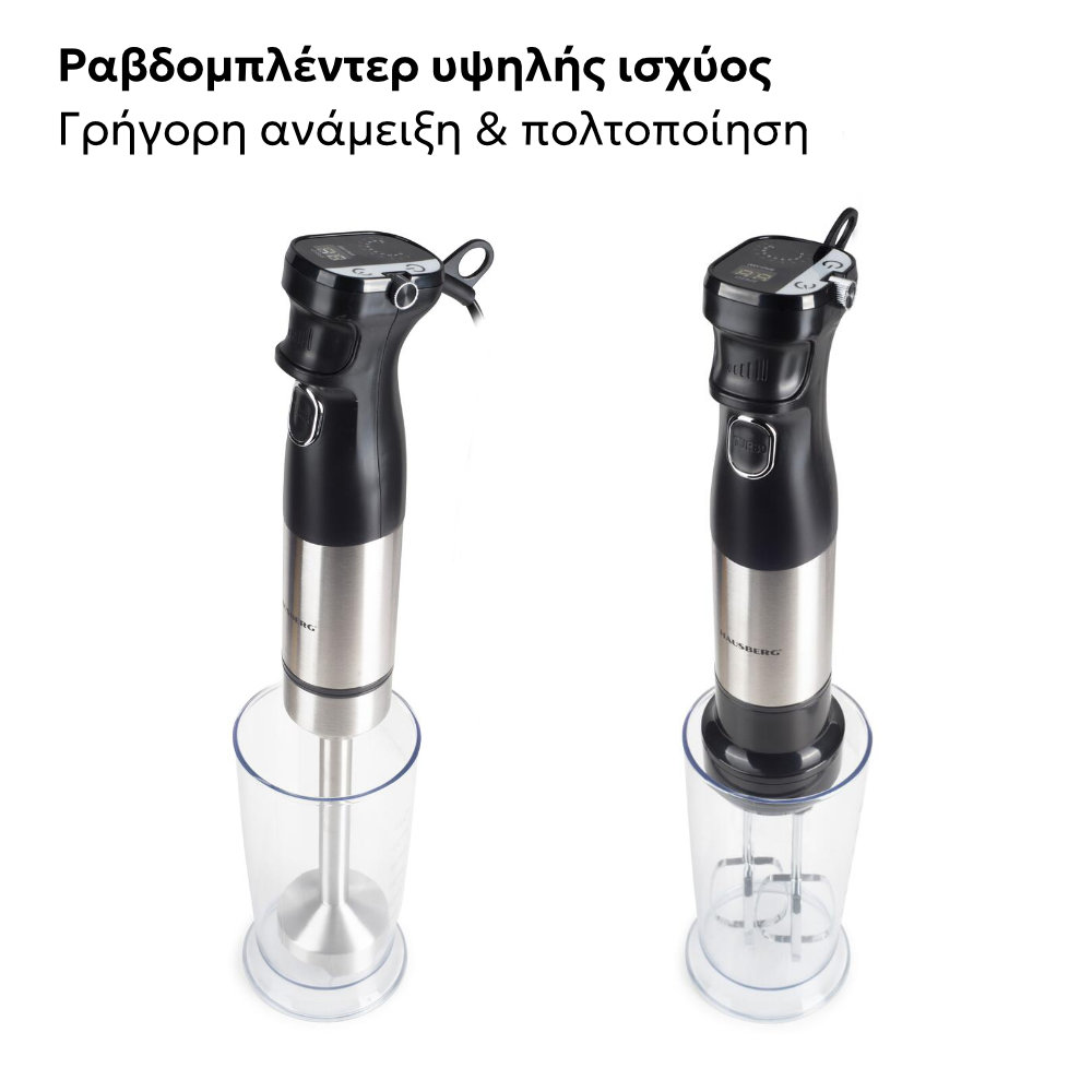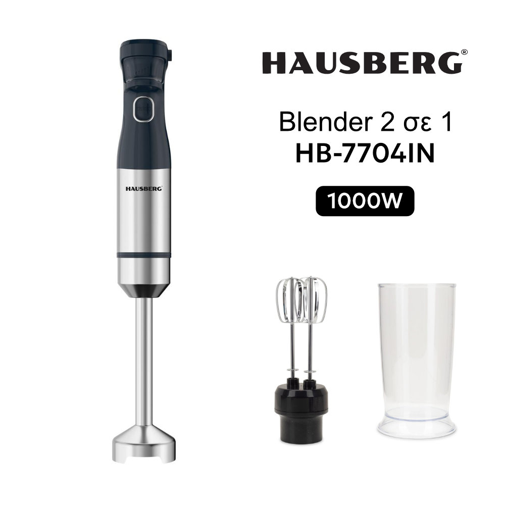 Ραβδομπλέντερ Hausberg HB-7704IN Inox 1000W - 10 Ταχύτητες & Λειτουργία Turbo Lock